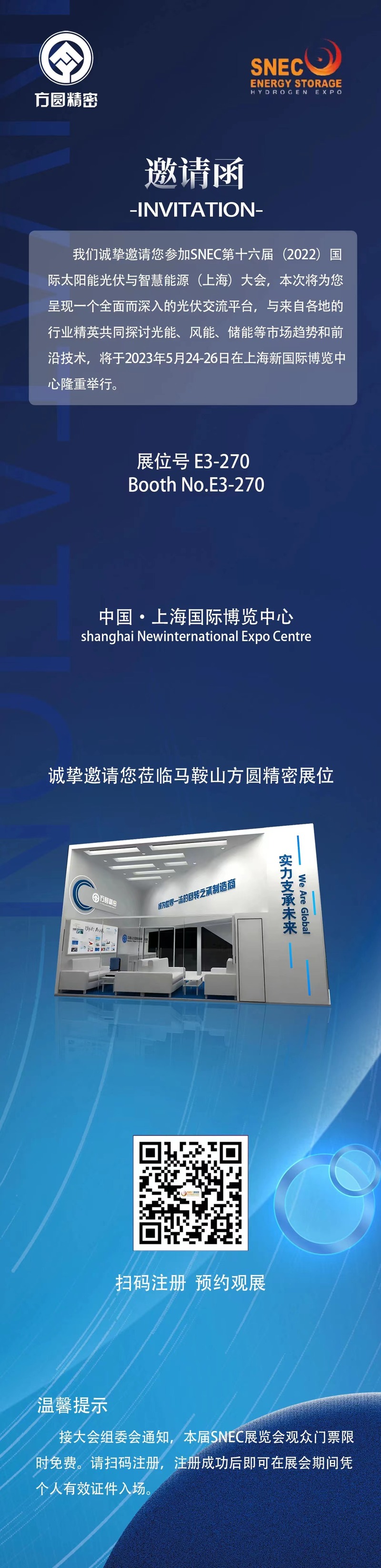 展會(huì)邀請(qǐng) | 方圓精密與您相約SNEC第十六屆(2023)國(guó)際太陽能光伏展覽會(huì)